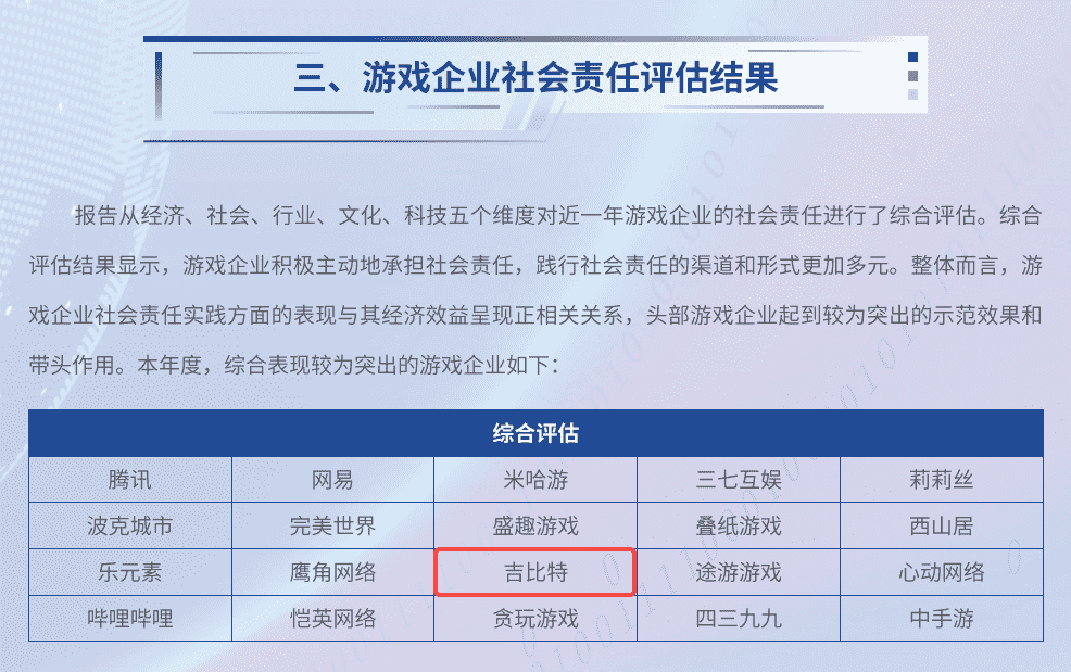 7月3日,,由中国音像与数字出版协会指导,,,北京市西城区人民政府主办的“2024游戏责任论坛”在北京举行。。。论坛上,,,,人民网舆情数据中心、、、人民灵境研究院、、、灵境 · 游戏实验室联合发布了《2023-2024游戏企业社会责任报告》(以下简称“《报告》”),,公布了游戏企业社会责任评估结果。。厦门35273网络技术股份有限公司(以下简称“35273”或“公司”)获评“2023-2024年度中国游戏企业社会责任综合表现较为突出企业”。。。这是继2020年以来,,,35273第五次入围人民网中国游戏企业社会责任相关荣誉榜单。。。