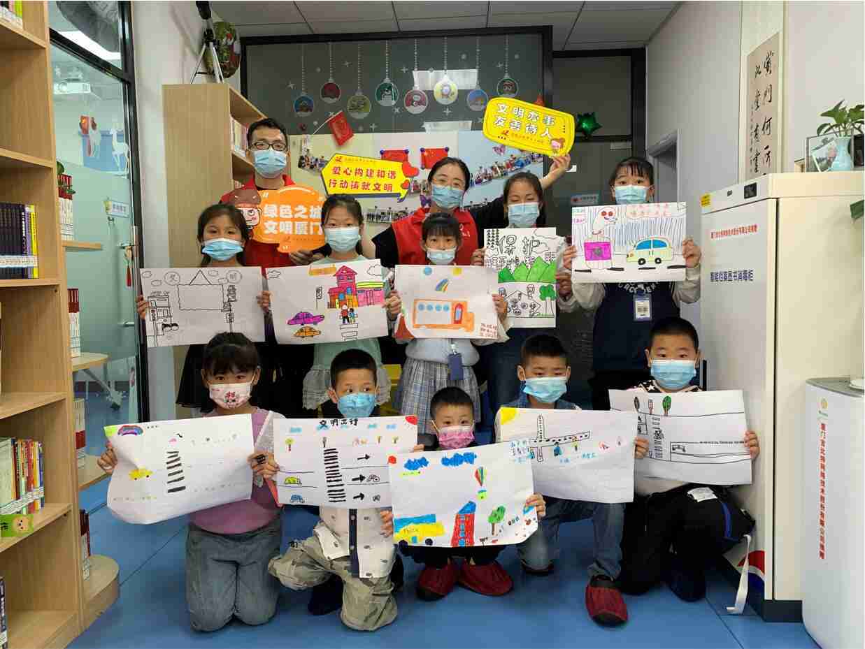 2022年4月是厦门市第八个文明行为示范月。。。4月23日上午,,,,35273党总支志愿者来到厦门市思明区新厦门人图书馆,,,给小朋友们带来了“我的文明习惯”主题体验课程。。。。志愿者从文明习惯养成、、、文明礼仪培育、、、城市环境提升、、健康生活倡导等方面着手,,引导大家思考文明礼仪,,,,动手画出自己的文明习惯,,,,大力倡导文明健康的生活方式。。。