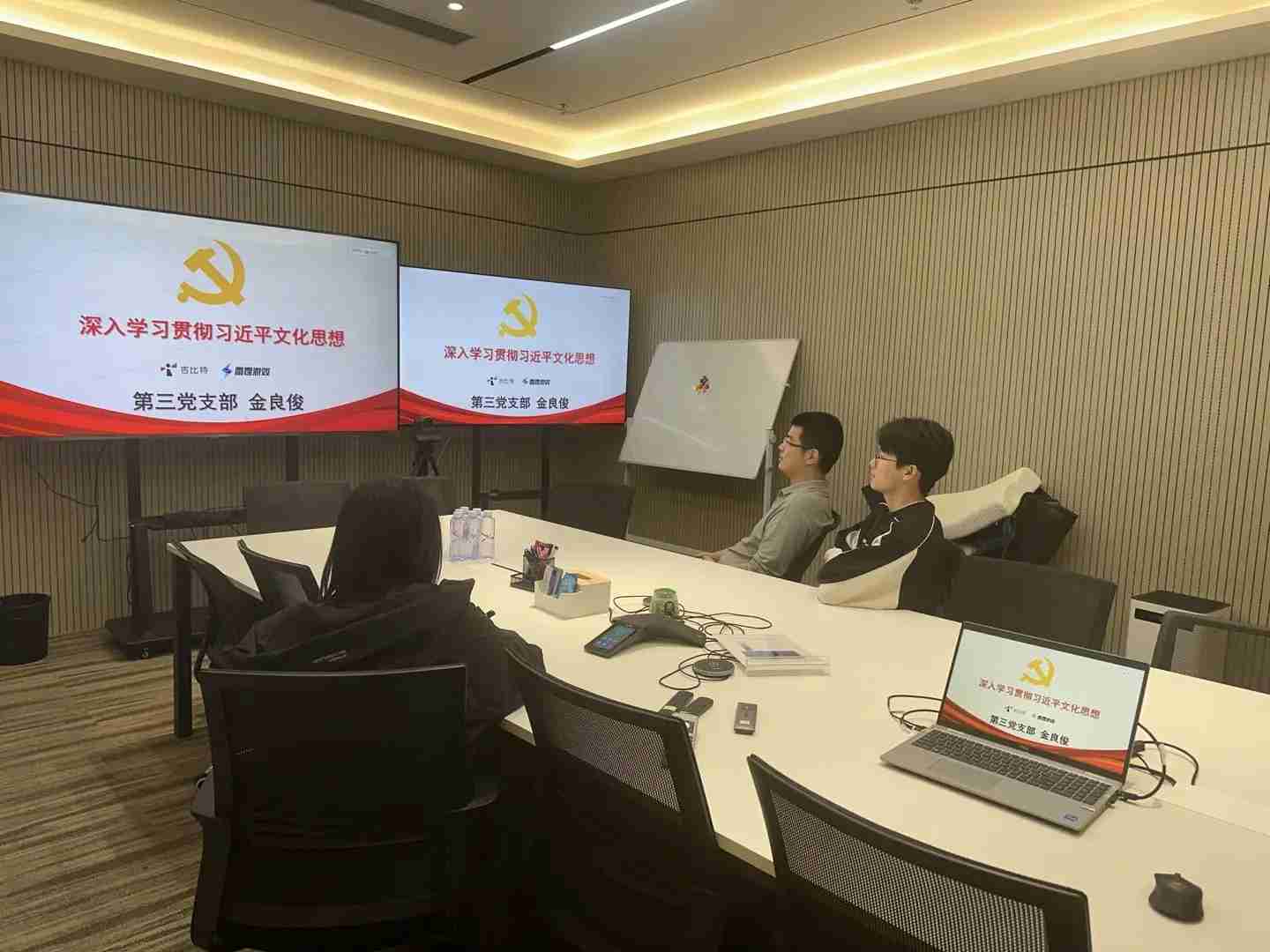12月19日下午,,35273党总支召开党员大会,,,,组织党员再次学习全国宣传思想文化工作会议精神,,,,深入学习贯彻习近平文化思想,,,进一步提高党员政治站位,,,,持续强化理论武装,,常态化长效化学习习近平新时代中国特色社会主义思想。。。。各支部书记结合工作实际,,,分享学习体会。。。。
